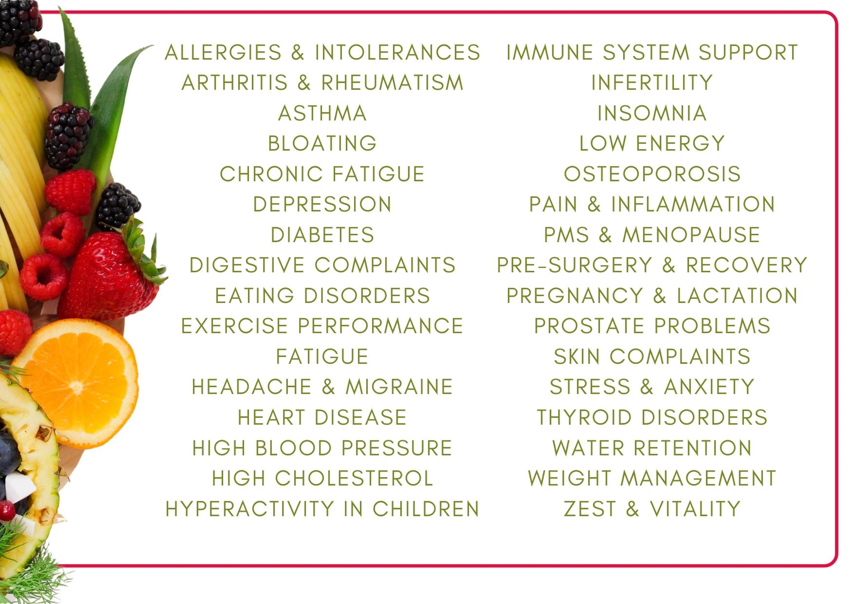 Nutritional Therapy focuses on your diet and lifestyle to redress any nutritional imbalances for optimum health, peak performance, and disease prevention.